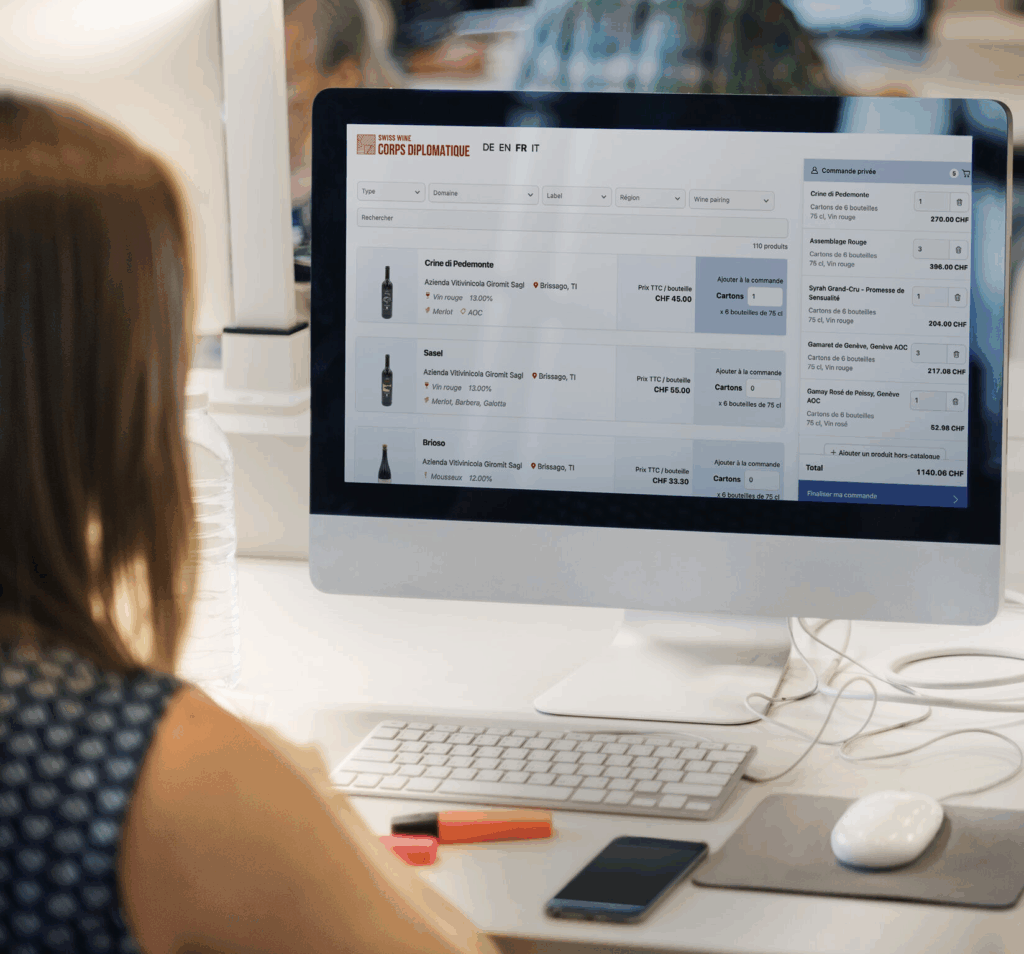 Cette année, nous avons mis sur pied une nouvelle plateforme pour Swiss Wine Promotion, afin de simplifier la gestion des commandes de vins suisses pour les représentations diplomatiques suisses à l’étranger.