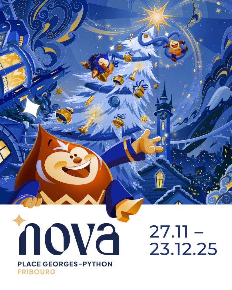Du 27 novembre au 23 décembre 2025, la place Georges-Python et toute la ville de Fribourg s’est illuminée pour apporter joie, lumière et ambiance festive aux habitants du chef-lieu et des environs.